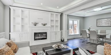 Feature walls, panel molding, applied molding, accent walls, paneled ceilings, chair rail, paneled arches and columns.