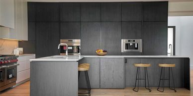 Kitchen cabinets, vanities, wine rooms, bars, outdoor kitchens, spice kitchens, basement kitchens, all types of custom storage, libraries, and offices.